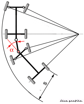 A mai gépkocsikon a kormányzandó kerekeket egyenként forgatjuk el úgy, hogy mindegyiknek a tengelye (tengelycsonkja) továbbra is a kanyarodási középpontba mutasson. Ez azt jelenti, hogy a két kereket nem egyforma mértékben kell elfordítani (jobb oldali ábra). Ezt a követelményt kielégítő módon teljesíti a "trapéz", a két kereket összekapcsoló rudazat. Itt a két kar és az összekötő rúd méretarányától